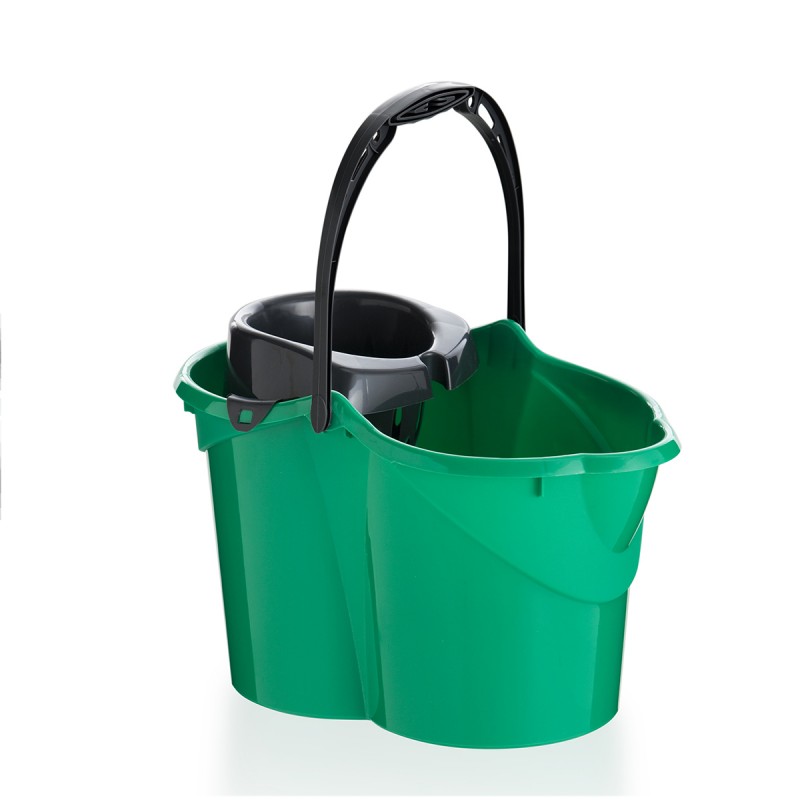 Cub de plàstic amb forma ovalada de 15 litres de capacitat. Inclou escorredor.