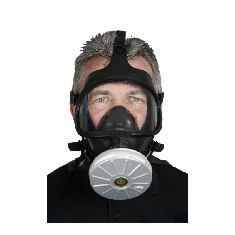 Màscara integral fabricada en material 100% neoprè, amb connexió normalitzada segons EN148-1 per a la connexió de filtres amb la mateixa rosca.