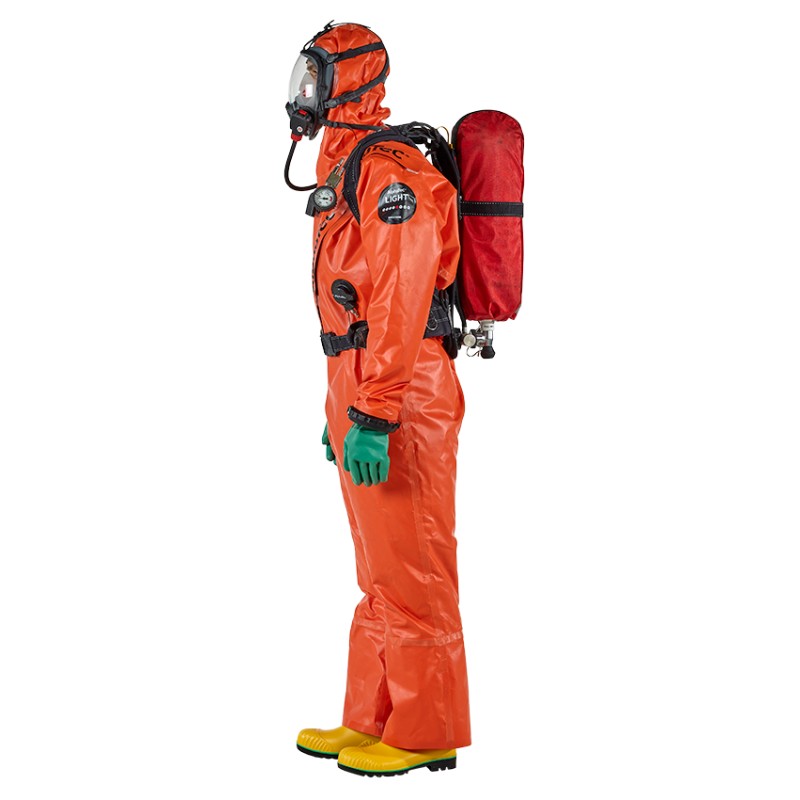 Disseny d'entrada del darrere, no encapsulant, tipus TR (amb segell facial i sense gepa, el ERA es porta fora del vestit). Segell facial de disseny anatòmic per a una seguretat i comoditat òptimes. Sistema d'anella de guant de baioneta per a un canvi de guants ràpid i senzill - Botes o mitjons cosits al material del vestit.
