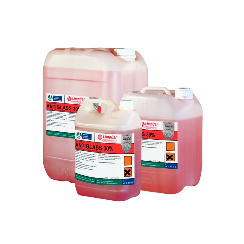 ANTIGLAS-30% es un fluido anticongelante orgánico especial para su empleo en circuitos de refrigeración de vehículos. Protege de las bajas temperaturas garantizando su poder anticongelante hasta -15ºC (puro). Protege eficazmente contra la corrosión de los radiadores y circuitos de refrigeración