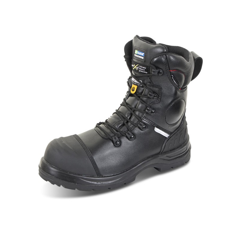 Bota de seguridad de cuero resistente al agua, cremallera lateral, acolchado interior transpirable, membrana impermeable, suela de caucho y poliuretano resistente a 300ºC, antiestatica, ESD, puntera y plantilla de composite, antideslizante, protección metatarsial.