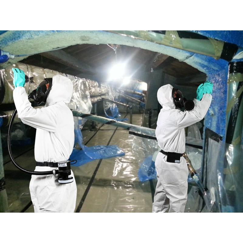Libertad de movimientos: la batería de cintura proporciona la energía suficiente para que la unidad motorizada impulse un flujo de aire constante durante 8 horas sin necesidad de conexión a fuentes de aire externas a través de tubos de alimentación. Esto permite al usuario movimientos con total libertad, sin limitación de distancia y sin riesgo de caídas al mismo nivel por la presencia de tubos o mangueras por el suelo.