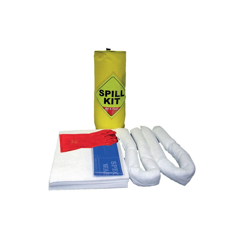 Kit para el control de derrames de aceites, hidrocaburos, lubricantes y disolventes. Diseñano para ubicarse en cabinas de camiones o carretillas montacargas. Repelente al agua.