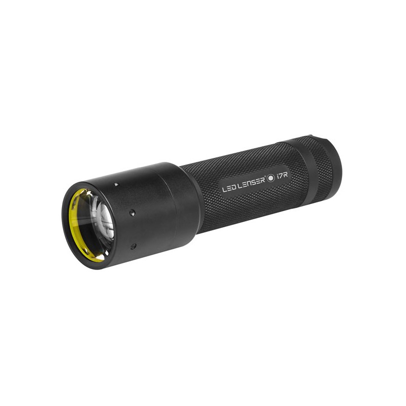 Linterna de mano recargable, compacta para uso profesional diario, sistema de enfoque para iluminación localizada o a distancia, indicador de carga, conexión USB, resistente al agua (IPX4 - A prueba de salpicaduras), robusta carcasa de metal.