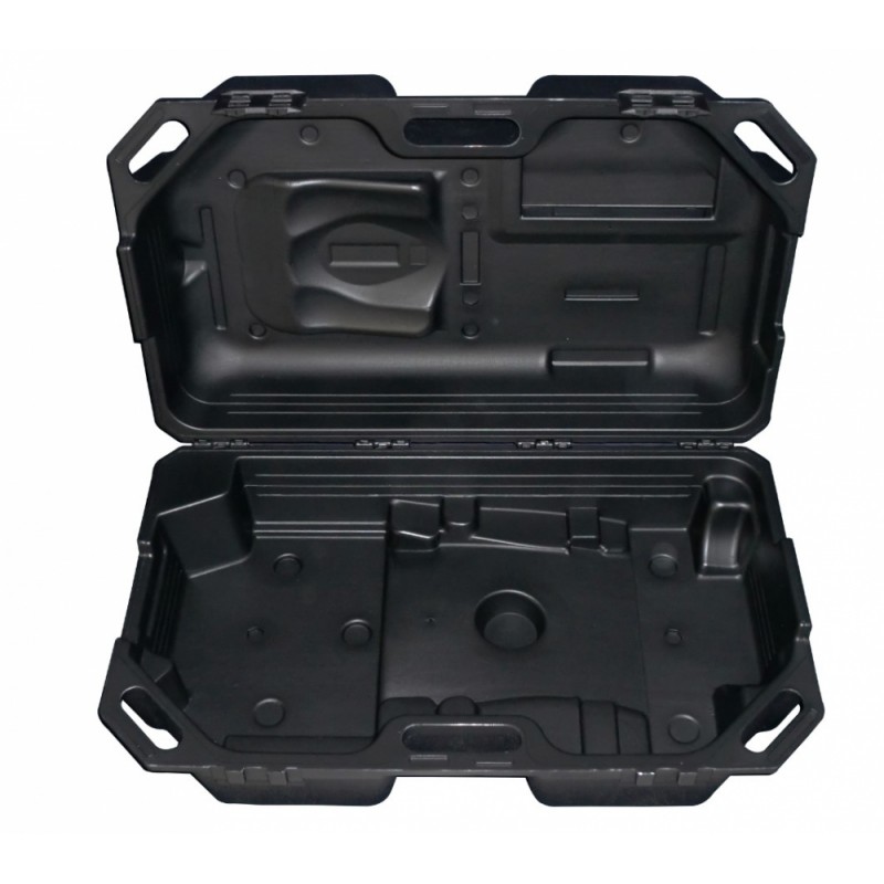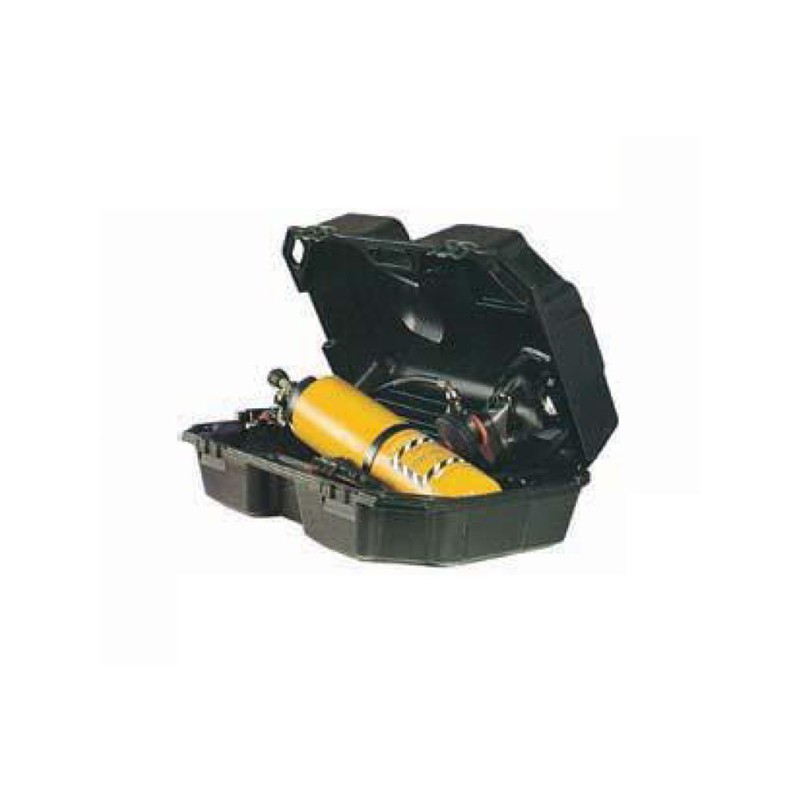 Práctico maletín de plástico rígido de doble pared que permite un cómodo transporte y almacenamiento de un equipo de respiración autónoma completo (máscara, regulador y espaldera con botella montada).