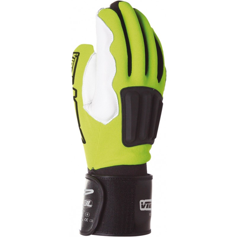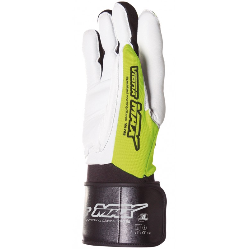 Guante de piel hidrofugada de cabra en palma y Lycra transpirable en dorso para mejorar la dexteridad y el confort. Muñequera ajustable por velcro. Refuerzo especial anti-vibratorio en palma y dedos. Refuerzo anti-impacto negro en el dorso del guante.